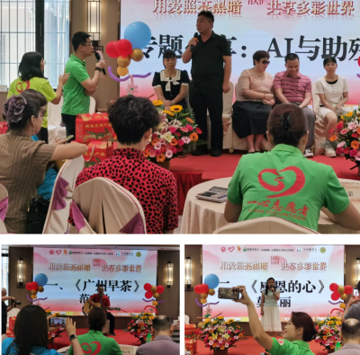 当天,容桂齿留香饭店二楼热闹非凡,充满喜庆。“音缘相聚”听歌猜歌名、“字间浮生”字词接龙、视障乐队表演、歌唱比赛、AI与助残研讨,丰富多彩的活动为节日赋能,为视障群体带来欢乐。