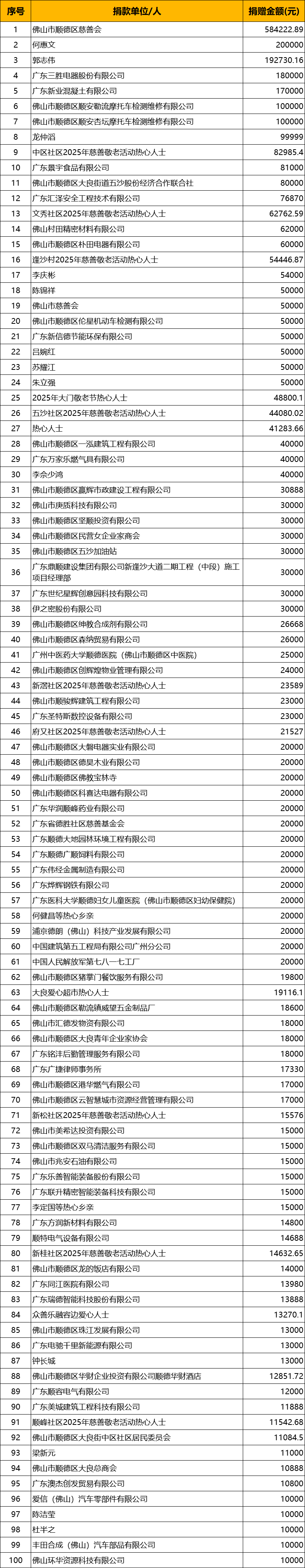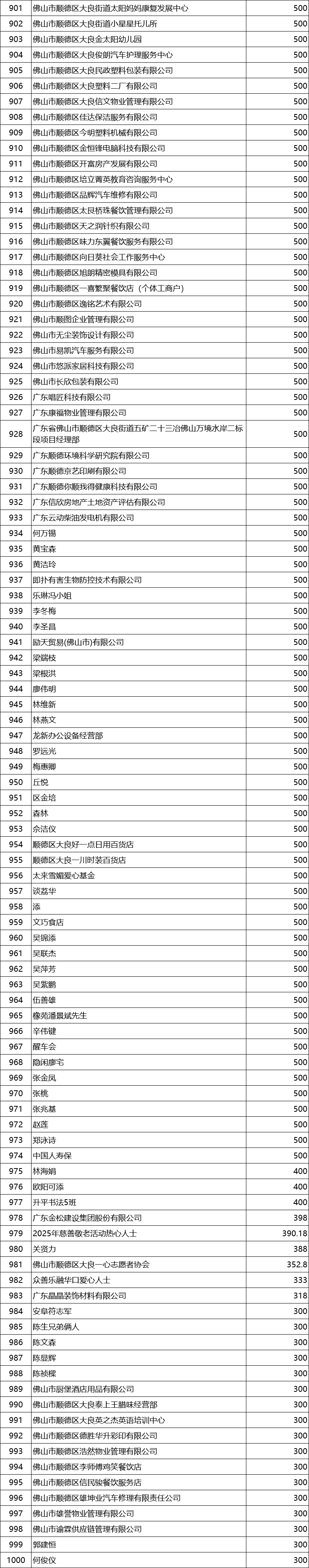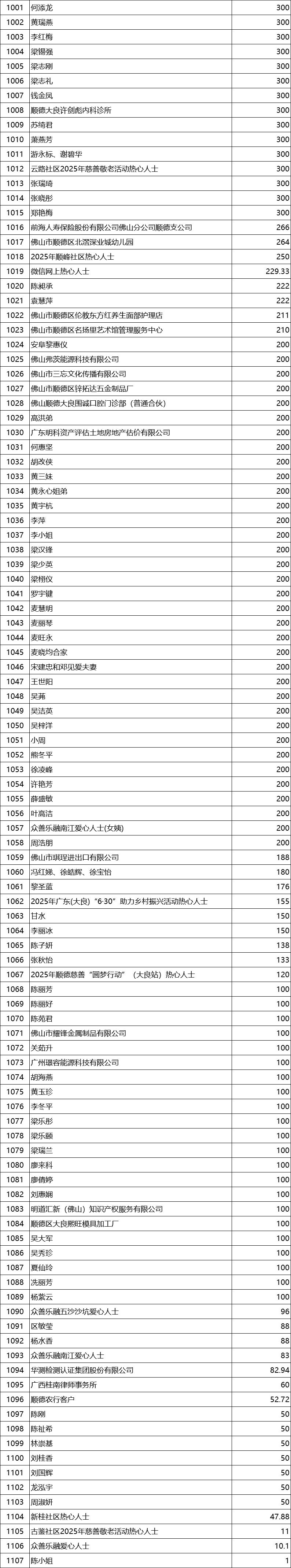 凤城有爱,感恩有您!大良慈善会2025年第四季度捐款鸣谢名单
