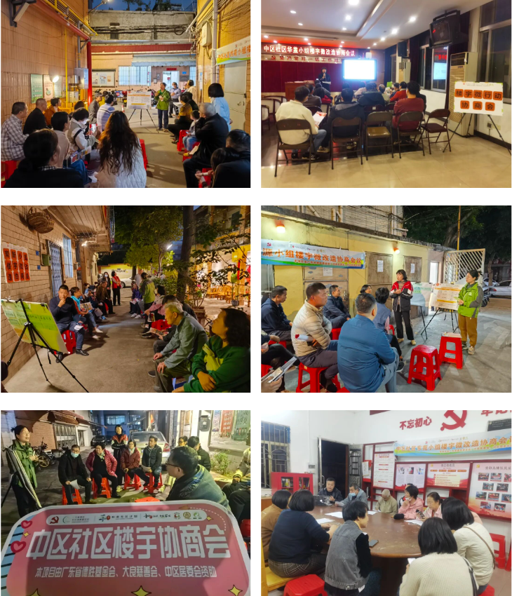2025年2月-4月,为深入推进老旧小区微改造工作,提升老旧楼宇的人居环境,中区社区分别组织了伯西巷、大石街、兴华楼5座、东成大厦1-6座、康华楼1座和3座、云康楼2座、南兴二街的居民开展了楼宇微改造协商会。会议上,居民围绕“改不改”、“改什么”、“怎么改”3个方向展开热烈的讨论。各个楼宇结合自身的实际情况,提出初步的改造方案。其中,伯西巷楼宇居民提出安装扶手和粉刷翻新楼道墙身的方案;大石街楼宇居民提出更换防盗门的方案;兴华楼5座居民就加装电梯相关事宜进行讨论;东成大厦1-6座居民提出更换水管的方案;康华楼1座、3座居民提出楼道铺贴的方案;云康楼2座楼宇居民提出铲除楼道墙身即将掉落的瓷砖,修缮楼道墙身的方案;南兴二街居民提出修缮存在安全隐患的楼宇外墙的方案。通过协商会,各居民就楼宇微改造方案达成共识,并选出了2名楼宇微行动发起人,负责统筹楼宇微行动的工作。最终,共有13个楼宇提交了微行动申报书,内容包括修缮剥落的外墙、更换水管、安装防盗门、粉刷公共楼道墙身、铺贴公共楼道等。