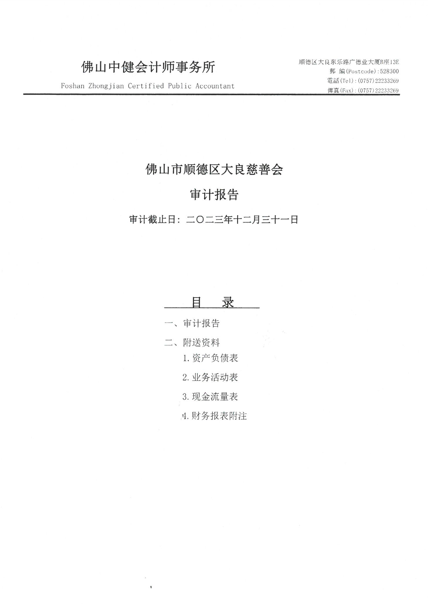 大良慈善会2023年审计报告